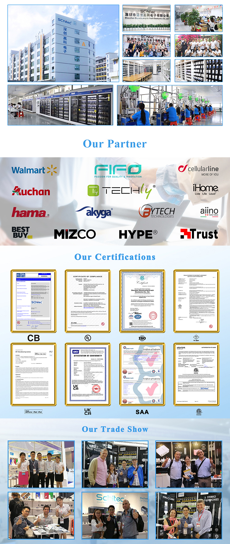 A: Schitec یک کارخانه واقعی واقع در GuShu، xixiang، منطقه Baoan، شنژن، چین است که عمدتا لوازم جانبی موبایل مانند شارژر USB، شارژر ماشین، شارژر دیواری و کابل USB را تولید می کند.